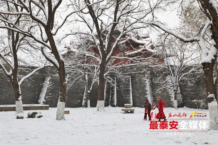 望岳讯13日,雪中岱庙银装素裹,白雪覆盖青瓦飞檐。红墙映雪最新股票配资平台,古建更显雅致。