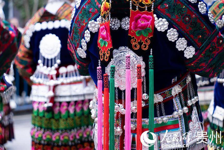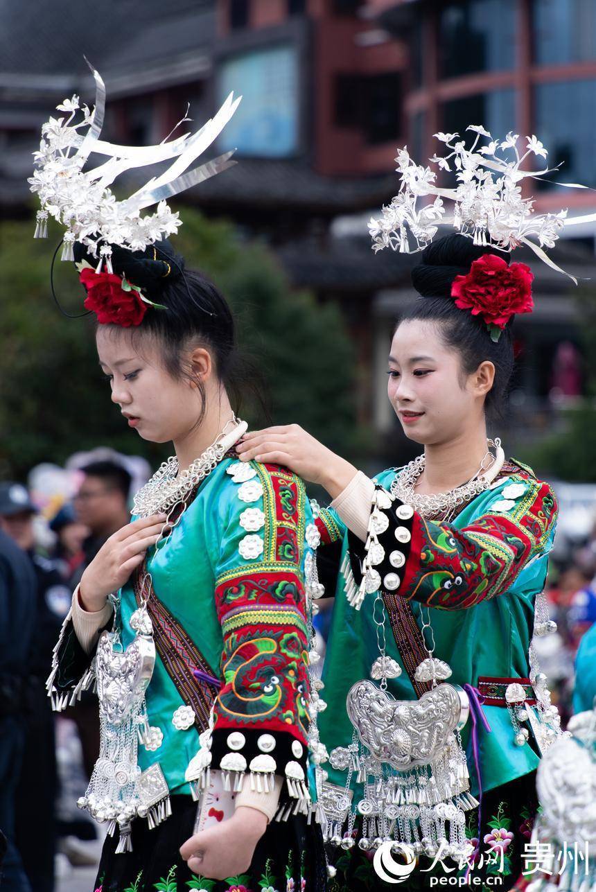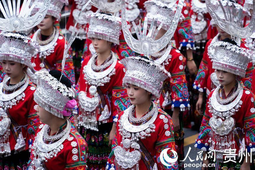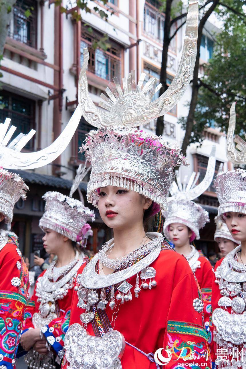 非遗巡游中,身着盛装的苗族女孩。人民网记者 涂敏摄
