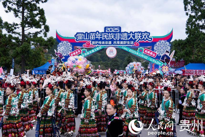 2025中国·雷山苗年系列活动开幕式现场。人民网记者 涂敏摄人民网雷山11月6日电 (记者涂敏)11月5日,2025中国·雷山苗年系列活动在贵州省黔东南州雷山县铜鼓广场隆重开幕,五十六支身着民族盛装的方阵,为八方宾客奉上了一场“行走的非遗盛宴”。
