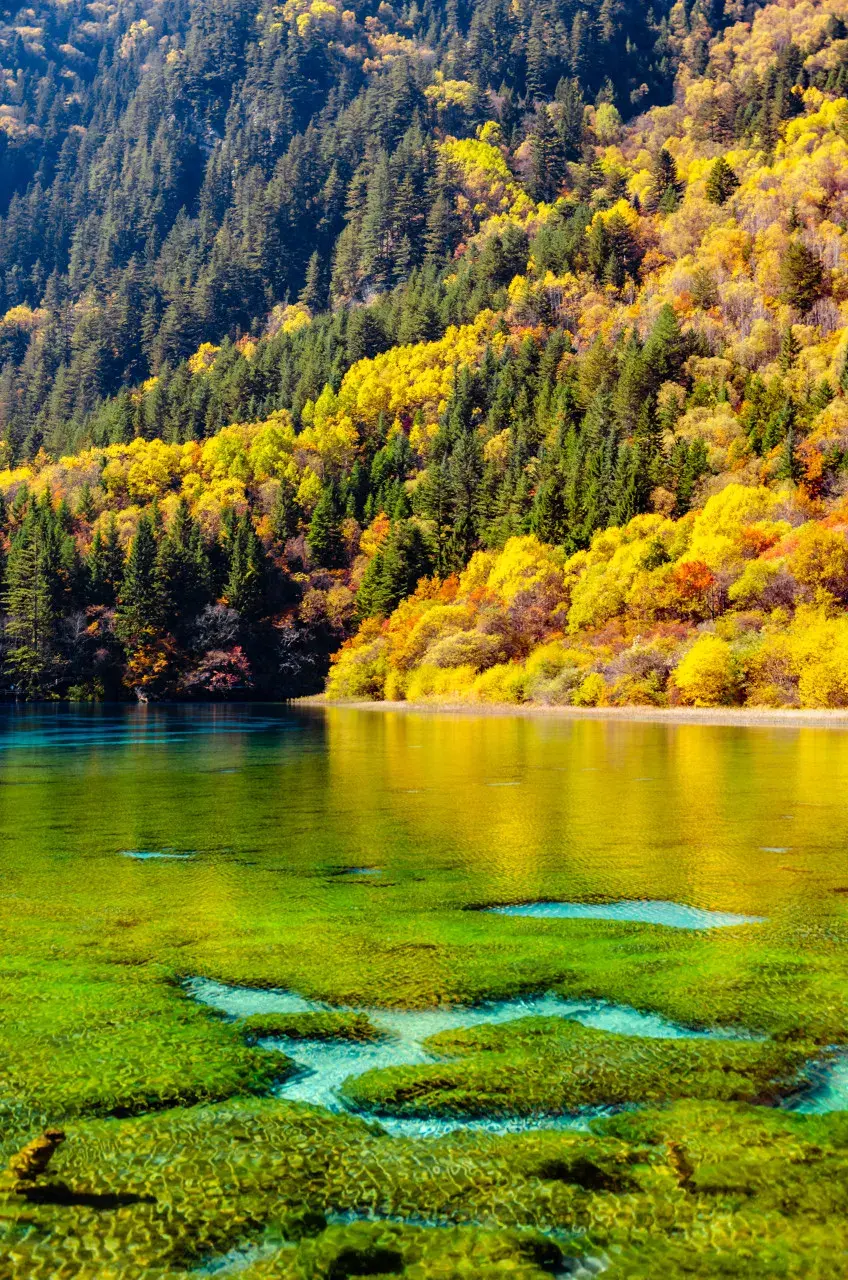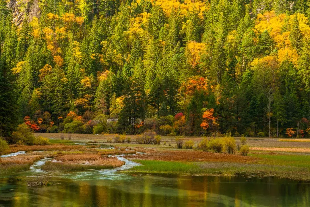 九寨沟的美不仅在于水,还在于它四季分明的景色。