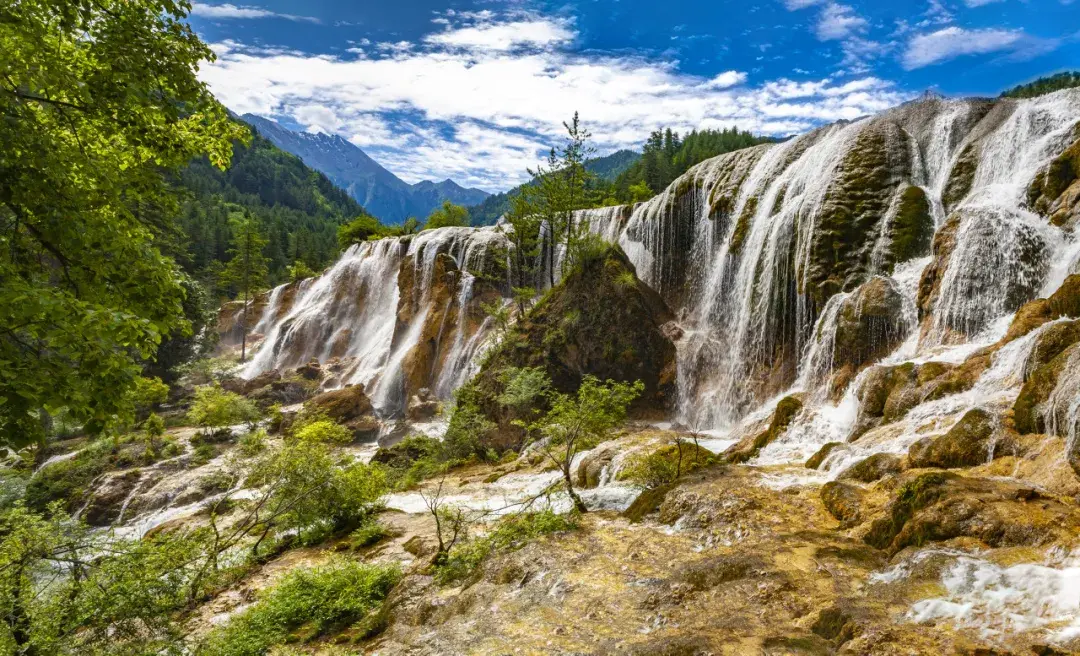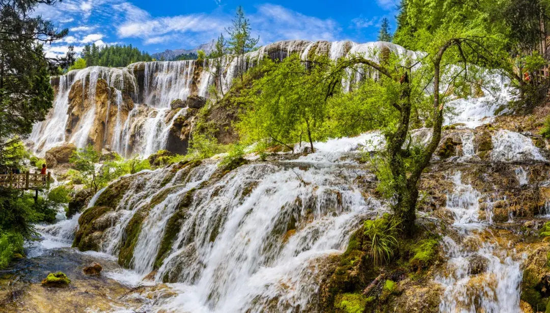 距离五花海不远处的珍珠滩瀑布,是九寨沟最具动感的景观之一。
