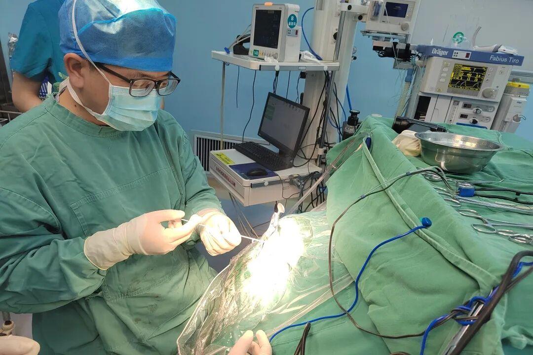 术中,团队精准定位,通过微创手术把引流管穿刺到患者颅内肿瘤囊腔,顺利引流出脑脊液,并将给药装置固定于皮下,手术成功完成。